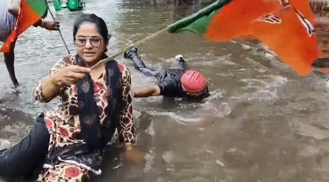 সল্টলেকের রাস্তায় জমা জলে সাঁতার! নিকাশি সমস্যার প্রতিবাদে বিজেপি কর্মীদের অভিনব আন্দোলন।