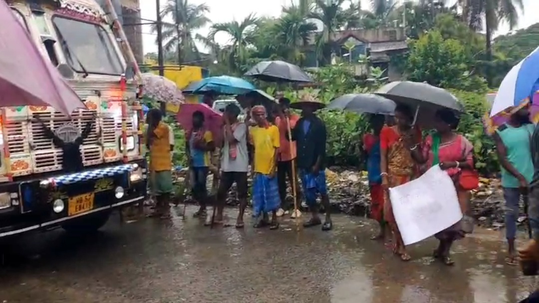 বিদ্যুৎ না থাকায় পানীয় জলের সংকট, মালদার নালাগোলা রোড অবরোধ করে আদিবাসী গ্রামবাসীরা।
