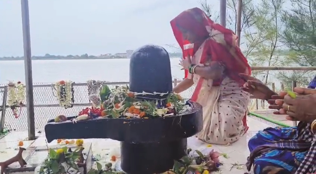 দ্বিতীয় সোমবারে বজ্রেশ্বর শিব মন্দিরে ভক্তদের উপচে পড়া ভিড়, কোমরজলে দাঁড়িয়েই জলাঞ্জলি শিবকে।