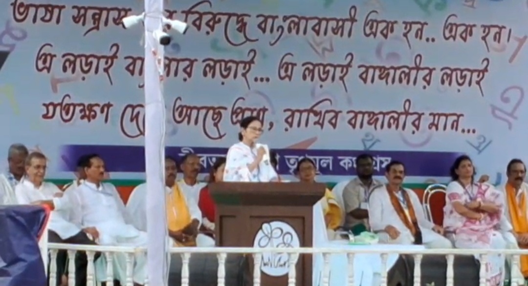 বীরভূম, নিজস্ব সংবাদদাতা:- আজ বীরভূমের বোলপুর গীতাঞ্জলি প্রেক্ষাগৃহে মুখ্যমন্ত্রী মমতা বন্দ্যোপাধ্যায় সরকারি আধিকারিকদের যেমন একগুচ্ছ নির্দেশ দেন তেমনি দলীয় নেতা কর্মীদের সতর্ক করেন তিনি। তারপরে BJP শাসিত রাজ্যে বাংলা ভাষাভাষীদের ওপর হেনস্তা, বাংলাদেশে বাক্যের অভিযোগ, তথ্যবঙ্গের রাজনীতি বাঙালির উপরে অস্মিতার উপর আঘাতের প্রতিবাদে,ভাষা আন্দোলনের ডাক দিয়েছিলেন তৃণমূল সুপ্রিমও তথা রাজ্যের মুখ্যমন্ত্রী মাননীয়া মমতা বন্দ্যোপাধ্যায়। তাই আজ বাংলা ভাষা ও বাঙ্গালীদের হেনস্তা করায় প্রতিবাদ বোলপুরে মিছিল বের হয়। এবং মিছিল শেষে সাধারণ মানুষদের উদ্দেশ্যে বাংলা ভাষা ও বাঙালির উদ্দেশ্যে বক্তব্য তুলে ধরেন। এবং এই প্রতিবাদ মিছিল রাজ্যের প্রত্যেকটা জেলায় হবে ।