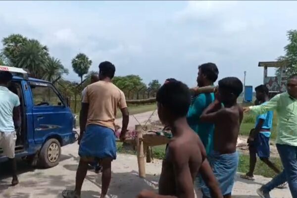 বেহাল রাস্তায় মৃত্যু! খাটিয়ায় করে হাসপাতালে পৌঁছেও বাঁচানো গেল না বৃদ্ধাকে।