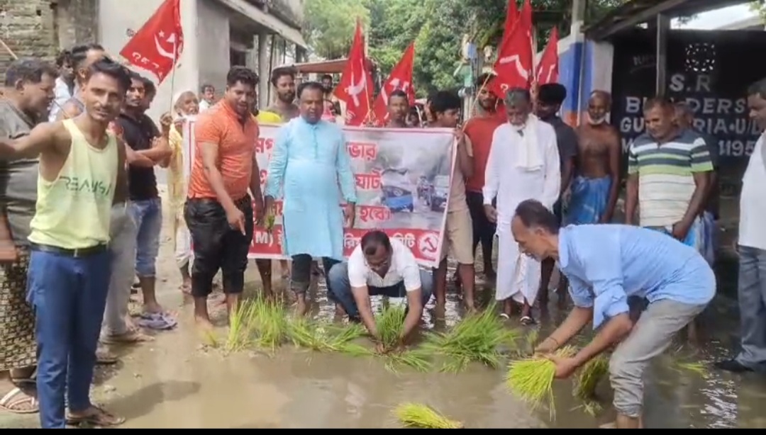 ইসলামপুর, নিজস্ব সংবাদদাতা:- জলমগ্ন রাস্তায় ধানের চারা লাগিয়ে বিক্ষোভ দেখান সিপিএম নেতা সামির খান ও সিপিএম নেতারা বিক্ষোভ দেখালেন। ঘটনাটি উত্তর দিনাজপুর জেলার ইসলামপুর থানার গুজুরিয়া গ্রাম পঞ্চায়েতের গুনজুরিয়া বাজার এলাকার জানা যায় দুটি রাজ্যের মানুষ এই রাস্তা দিয়ে চলাচল করে বিহার ও বেঙ্গলের মানুষ । এই রাস্তায় এক হাঁটু জল জমে আছে তিন মাস আগেই নাকি এই রাস্তা হয়েছিল। তবে রাস্তার পিছের চাদর উঠে গেছে। অন্যদিকে খারাপ রাস্তার কারণে প্রতিনিয়ত দুর্ঘটনা ঘটছে। আজ এই রাস্তায় ধানের চারা লাগিয়ে বিক্ষোভ দেখালেন সিপিএম নেতৃত্বরা । সিপিএম নেতা সমীর খান বলেন ইসলামপুর ব্লকের গ্রামগঞ্জে রাস্তার বেহাল অবস্থায় পড়ে রয়েছে যদি এইসব রাস্তা ঠিক না হয় তাহলে ভিডিও অফিস ঘেরাও করবো আমরা।