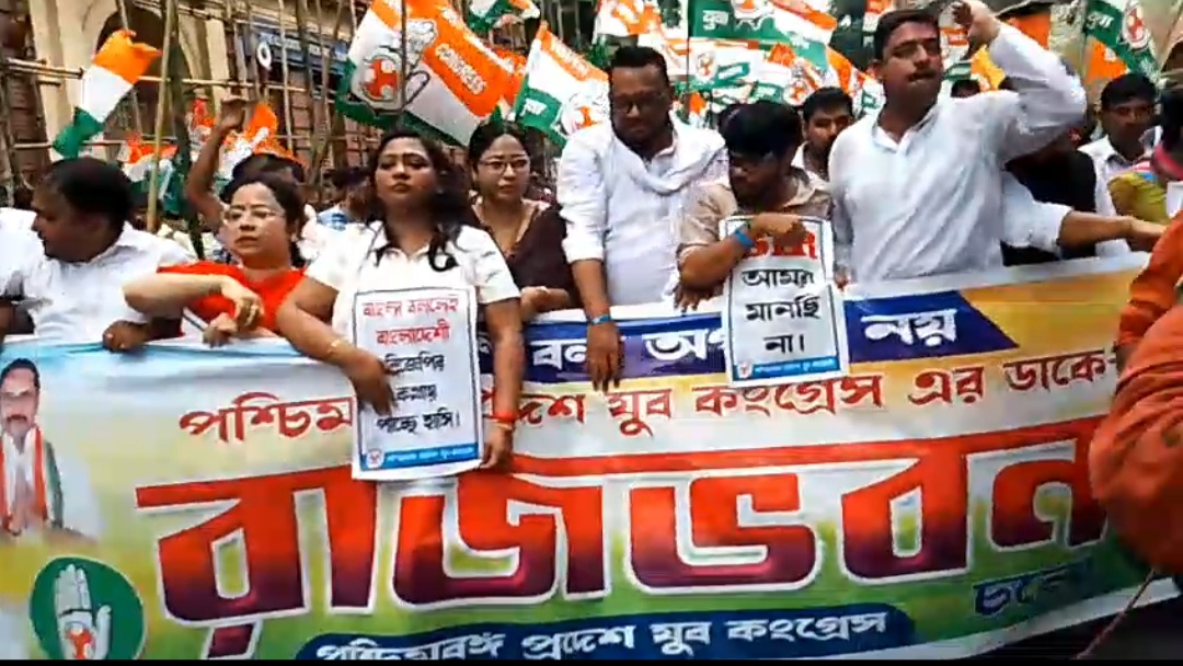 রাজভবন অভিযানে উত্তাল যুব কংগ্রেস, নিউ মার্কেট চত্বরে আটক বিক্ষোভকারীরা।