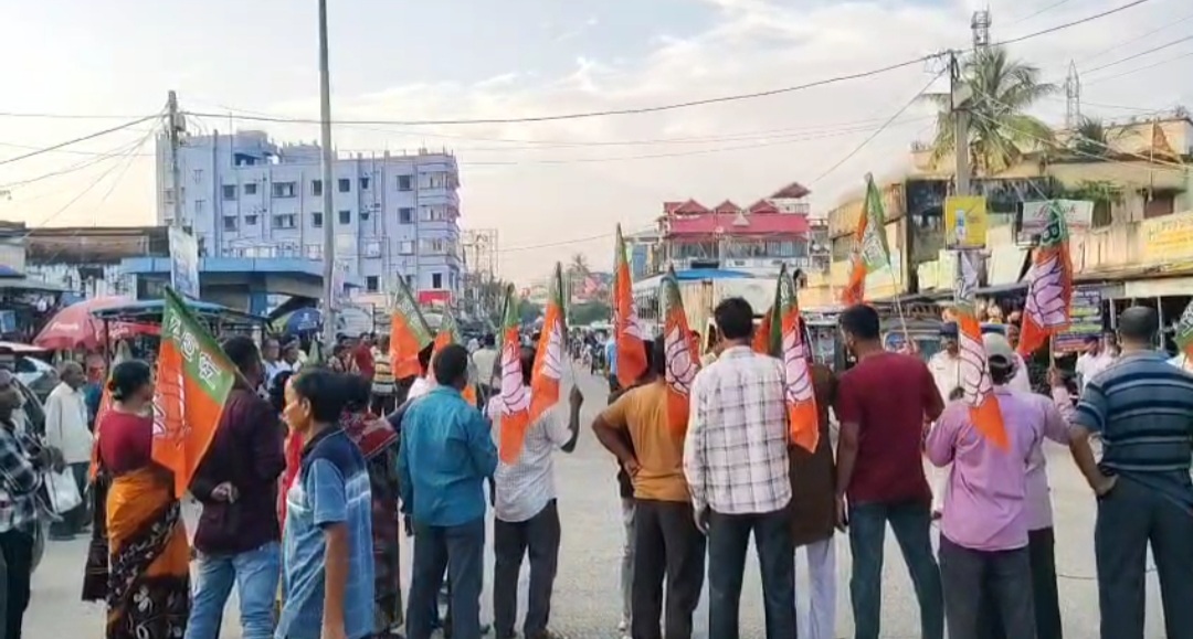 হবিবপুরে বিজেপির বিক্ষোভ, শুভেন্দু অধিকারীর উপর হামলার ঘটনার প্রতিবাদে রাস্তায় দলীয় কর্মীরা।
