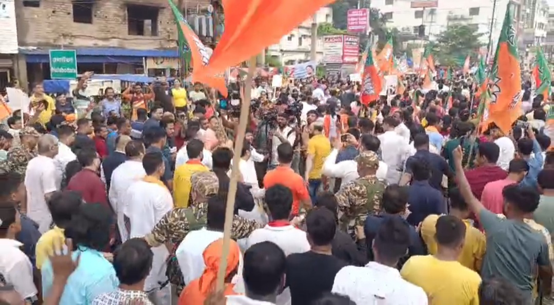 বারাসাত, নিজস্ব সংবাদদাতা:- রাজ্যের বিরোধী দলনেতা শুভেন্দু অধিকারীর কন্যা সুরক্ষা যাত্রাকে ঘিরে ধন্দুমার কান্ড বারাসাতে। ভাঙচুর তৃণমূল কংগ্রেসের শ্রমিক সংগঠন আইএনটিটিইউসির অফিস। অভিযোগের তীর মিছিলে আগত বিজেপি কর্মী সমর্থকদের বিরুদ্ধে। বুধবার বারাসাতের নওপাড়া কালীবাড়ির মাঠ থেকে কন্যা সুরক্ষা যাত্রার সূচনা করেন রাজ্যের বিরোধী দলনেতা তথা বিজেপি নেতা শুভেন্দু অধিকারী। কয়েক হাজার বিজেপি কর্মী সমর্থকরা সেই মিছিলে অংশগ্রহণ করেন। মিছিল কলোনি মোড় থেকে বারাসাত রেল ব্রিজ পার করে চাঁপাডালি মোড়ে আসতেই রণক্ষেত্রের চেহারা নেয় গোটা এলাকা। বিজেপির অভিযোগ আইএনটিটিইউসির অফিস থেকে মিছিলের ওপরে হামলা ও কটুক্তি চালানো হয়। তার পরিচিতিতে ই বিজেপি কর্মী সমর্থকরা প্রতিবাদ জানান। অন্যদিকে তৃণমূলের অভিযোগ মিছিল থেকে উদ্দেশ্যে প্রমাণিত ভাবে বিজেপি কর্মী সমর্থকরা শুভেন্দু অধিকারীর প্ররোচনায় তৃণমূল শ্রমিক সংগঠনের অফিসে হামলা চালায় এবং ভাঙচুর চালায়। ছিড়ে ফেলে মুখ্যমন্ত্রীর ছবি সম্বলিত পোস্টার ও ব্যানার। ঘটনাস্থলে বিশাল পুলিশবাহিনী পৌঁছে পরিস্থিতি নিয়ন্ত্রণে আনে। মিছিল শেষ হয় টাকি রোড সংলগ্ন শতদল ময়দানে। সেখানে শুভেন্দু, জনসভায় বক্তৃতা করেন। জনসভায় বক্তৃতা রাখতে গিয়ে মমতা বন্দ্যোপাধ্যায় ও তার সরকারকে তীব্র আক্রমণ করেন শুভেন্দু অধিকারী। বাংলাদেশী মুসলমান ও রোহিঙ্গা অনুপ্রবেশ নিয়ে সরব হন তিনি।