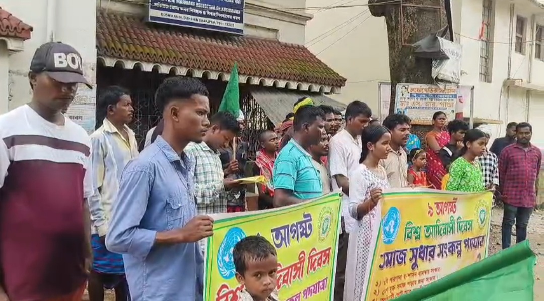 কুশমন্ডিতে বিশ্ব আদিবাসী দিবসে সেঙ্গেল অভিযানের পদযাত্রা।