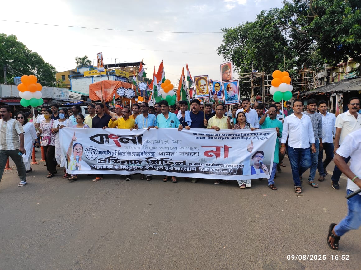 বাংলা বিরোধী BJP-র চক্রান্তের বিরুদ্ধে চন্দ্রকোনারোডে যুব তৃণমূলের প্রতিবাদ মিছিল।