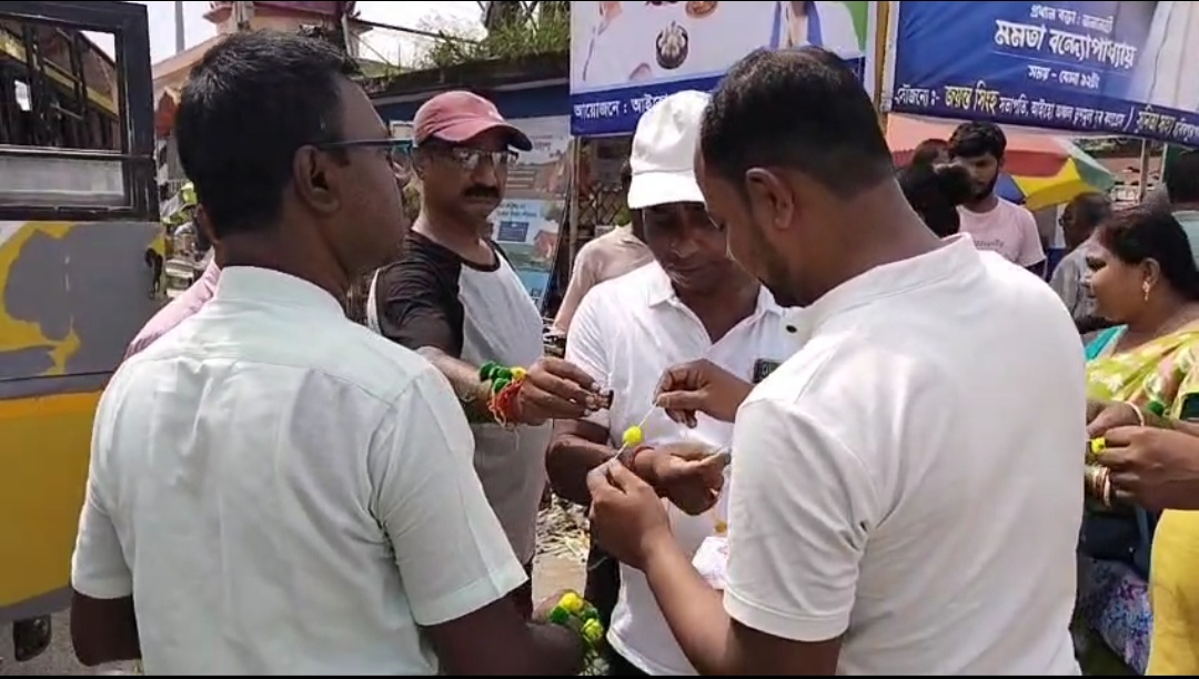 রাখি পূর্ণিমায় ঐক্যের বার্তা, আইহো বাসস্ট্যান্ডে তৃণমূলের রাখি বন্ধন উৎসব।