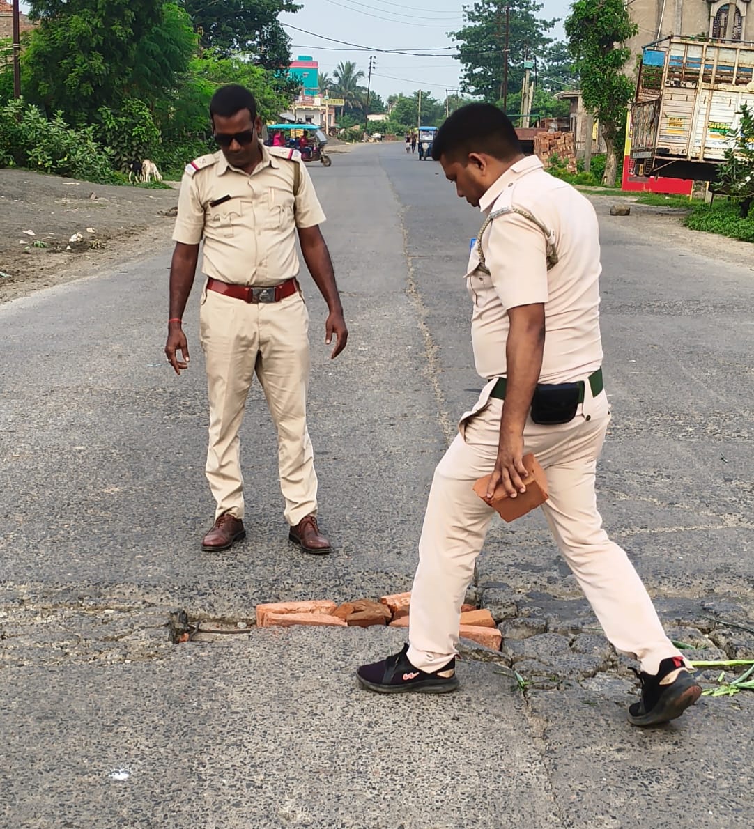 সুবিধার জন্য পুলিশের মানবিক উদ্যোগ, বড়ঞা থানার এএসআই মনিরুল ইসলাম নিজে হাতে সারালেন রাস্তার গর্ত