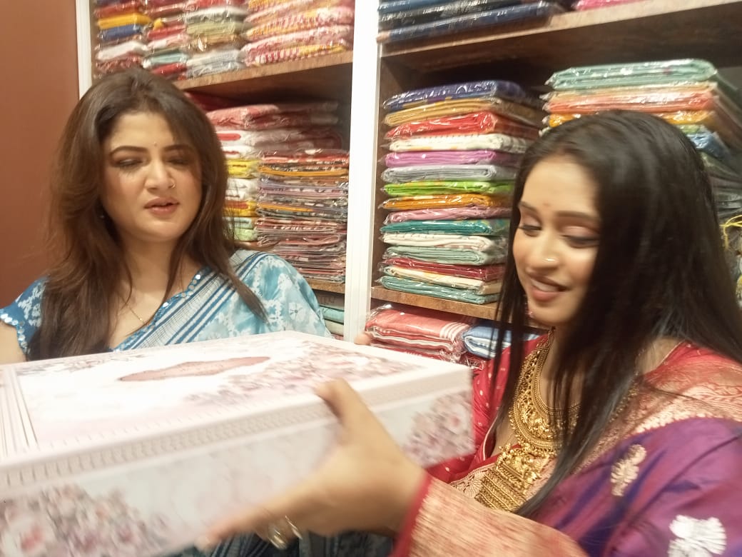 গড়িয়াহাটে পলাশ শাড়ি কুঞ্জের নতুন শাখা উদ্বোধন করলেন শ্রাবন্তী।