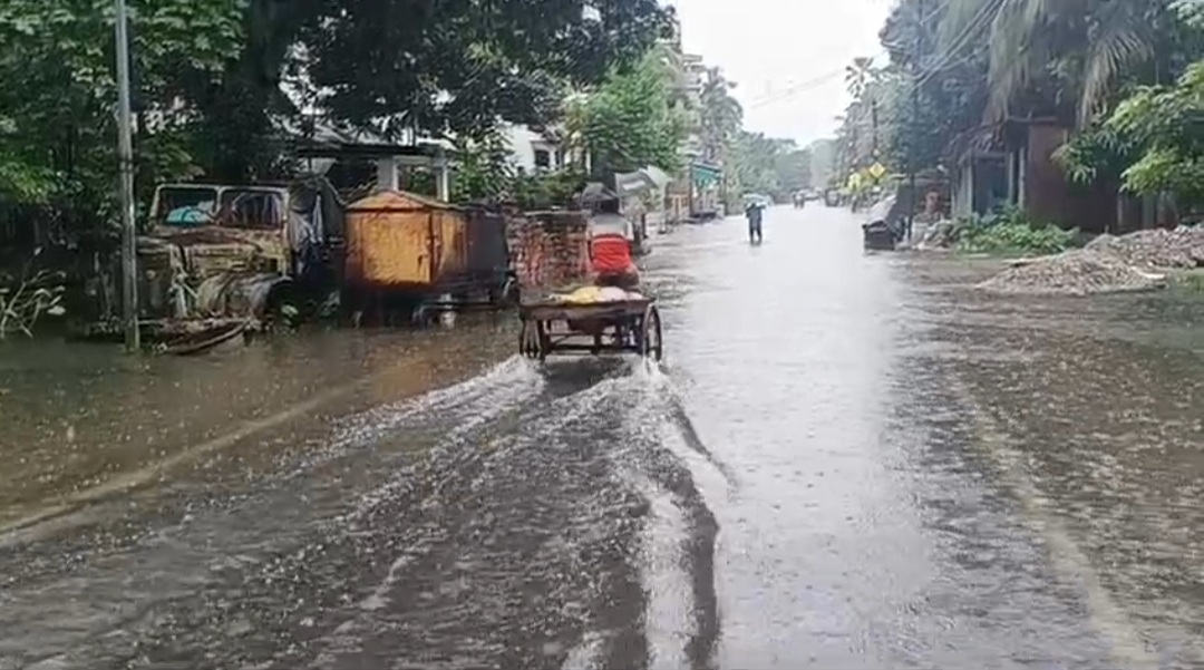 এক রাতের বৃষ্টিতে বন্যা পরিস্থিতি, রাস্তায় স্রোত বইছে আলিপুরদুয়ারে।