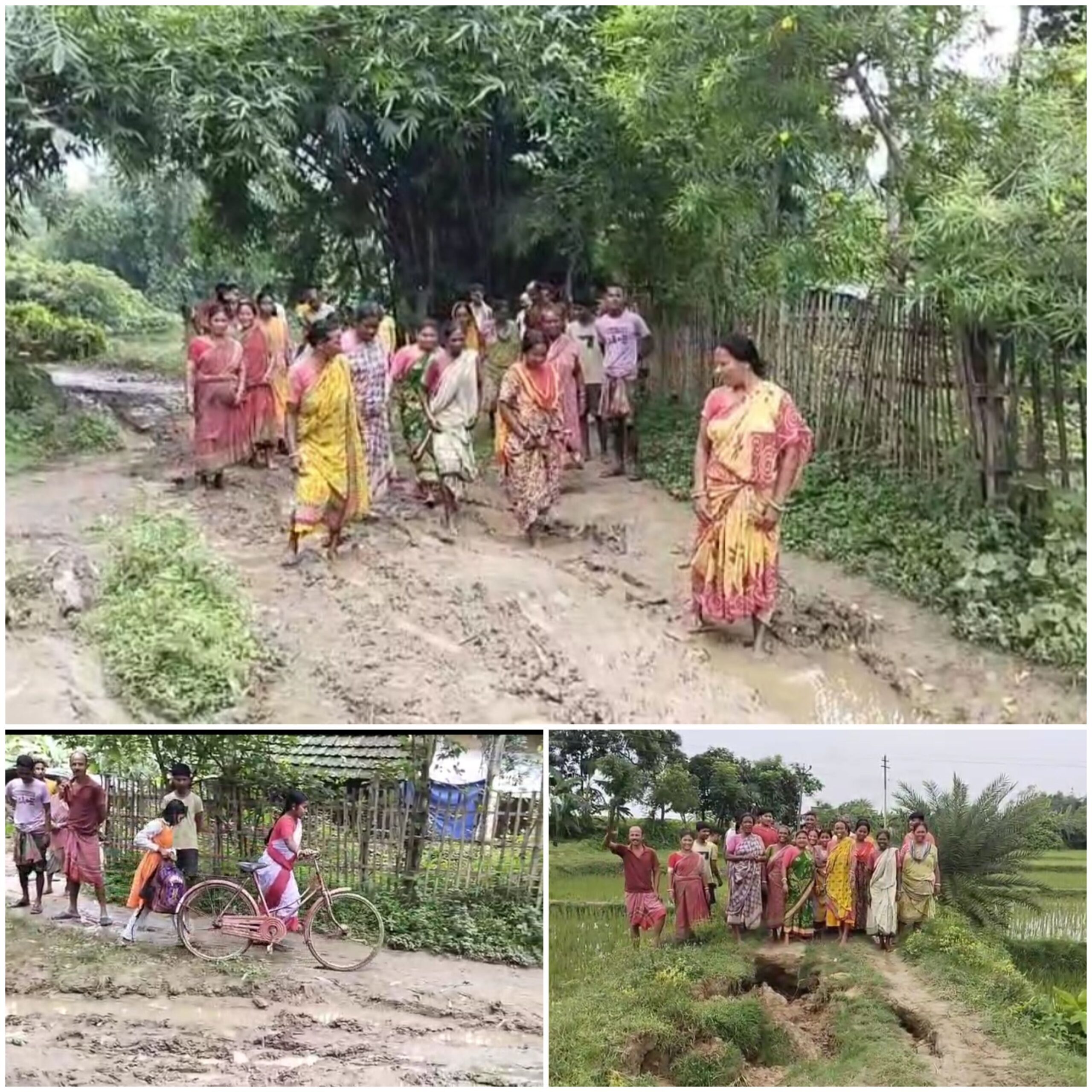 নিজস্ব সংবাদদাতা, বামনগোলা —-মালদহের বাগানগোলা ব্লকের,জগদল্লা গ্রামপঞ্চায়েতের, গুয়াবাড়ি এলাকার বেহাল রাস্তা দাবি তুলে সড়ক গ্রামবাসীরা গ্রামের ঢোকার দুই দিকের মেন রাস্তা খারাপ,এলাকার জনপ্রতিনিধিদের বারবার জানিও হয়নি কোন ব্যবস্থা। যার ফলে রবিবার সকালে রাস্তায় নেমে গ্রামবাসীরা ক্ষোভ উগরে দিয়েছেন।স্থানীয় বাসিন্দারা অভিযোগ করে বলেন, গ্রামে ঢোকা মাত্র দুইদিকে দুটো রাস্তা রয়েছে। দুই দিকেই রাস্তা বেহাল অবস্থা রোগী থেকে শুরু করে স্কুলে পড়ুয়াদের যেতে হলে এই রাস্তা দিয়ে নিয়ে যেতে হয়। গ্রামে ঢোকে না কোন গাড়ি, দিদিকে বলতেও ফোন করেও হয়নি কোন কাজ। স্থানীয় থেকে নেতা-নেত্রী থেকে শুরু করে প্রশাসন আধিকারিকদের জানিও হয়নি এই রাস্তার কাজ বলে অভিযোগ। যার ফলে ক্ষোভ উগরেদেন গ্রামের মহিলারা। এ বিষয়ে গ্রামবাসীরা জানান বিভিন্ন দপ্তরে জানানো হয়েছে, দিদিকে বলতো ফোন করা হয়েছে কোন কাজ হয়নি তাই আজ আমরা রাস্তার দাবি তুলে ভোট বয়কটের হুঁশিয়ারি দিয়েছেন। এ বিষয়ে বিজেপি মালদা জেলা সহ সভাপতি, বিনা সরকার কীর্তনীয়া, অভিযোগ করে বলেন এতো পথশ্রী থেকে শুরু করে এত সমাধান কোথায় হচ্ছে রাস্তা কোথায় এই তৃনমুল সরকার ভাওতাবাজি সরকার শুধু প্রতিশ্রুতি দেয় কাজ হয় না। এ বিষয়ে তৃণমূলের ব্লক সভাপতি, তথা জেলা পরিষদের সদস্য অশোক সরকার , বলেন রাস্ত খুব শীঘ্রই কাজ শুরু হবে বর্ষার জন্যই রাস্তায় কাজগুলি বন্ধ রয়েছে বিজেপি শুধু ডায়লগ দিতে পারে কাজ করে দেখাক এলাকায় বিজেপির বিধায়ক রয়েছে তার দেখা নেই। রাস্তা কোথায় করেছে এলাকার জন প্রতিনিধি হিসেবে। এই নিয়ে রাজনৈতিক তরজা শুরু হয়েছে বামনগোলা এলাকা জুড়ে।