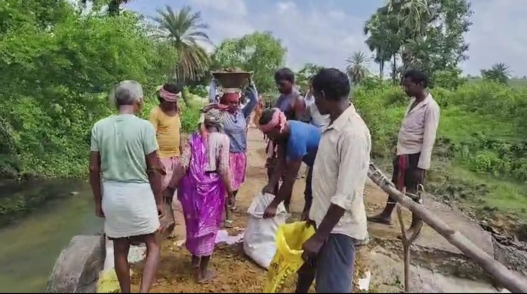 প্রশাসনের নিষ্ক্রিয়তায় ক্ষুব্ধ গ্রামবাসী, ঝুড়ি–কোদাল হাতে নিজেরাই মেরামত করলেন কালভার্ট।