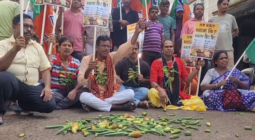 সবজির দামে আগুন! মেদিনীপুরে রাস্তায় সবজি ঢেলে বিজেপির অভিনব প্রতিবাদ।