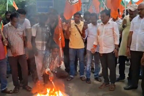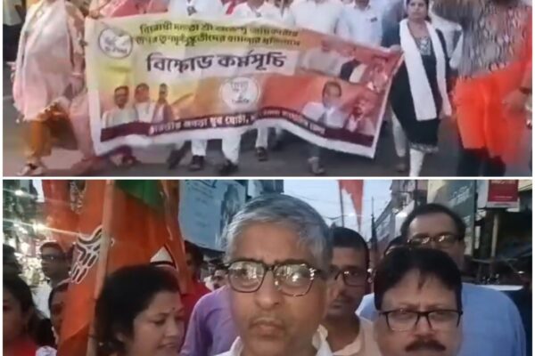 তালপুকুর ট্রাফিক মোড়ে বিজেপির রণক্ষেত্র-সদৃশ বিক্ষোভ, ব্যাপক যানজট।