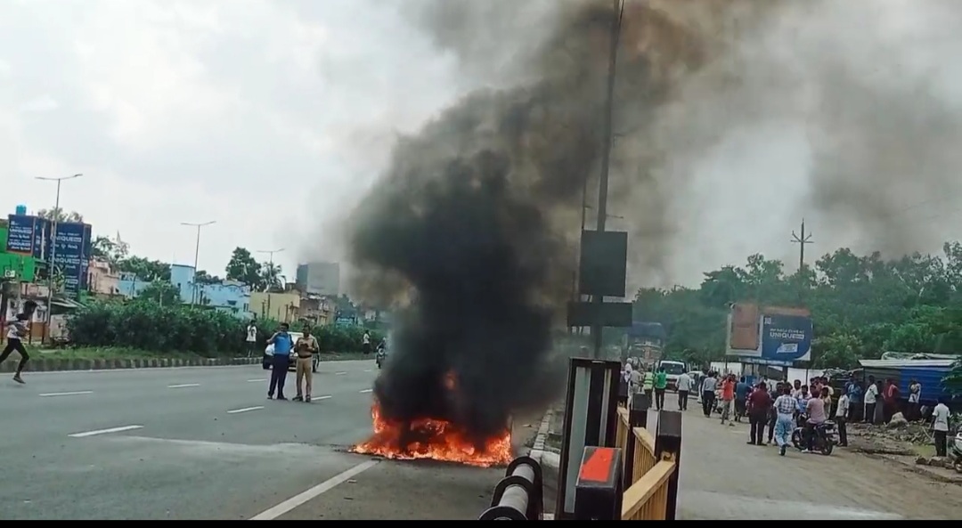শর্ট সার্কিটে ভস্মীভূত গাড়ি, তৎপর দমকল ও পুলিশে স্বাভাবিক ট্রাফিক।