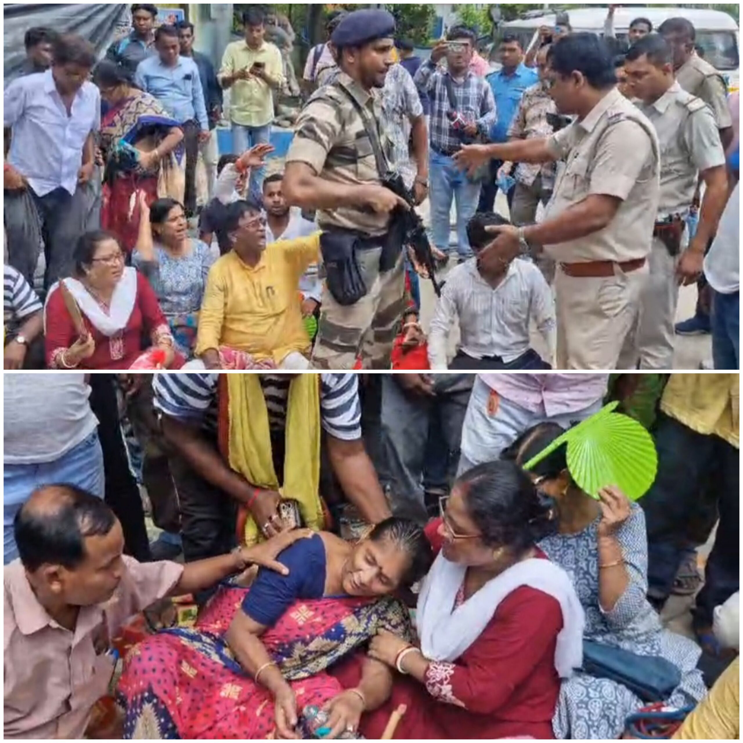 চাঁচল থানায় ২০ ঘন্টার অবস্থান-বিক্ষোভে বিজেপি সাংসদ খগেন মুর্মু।