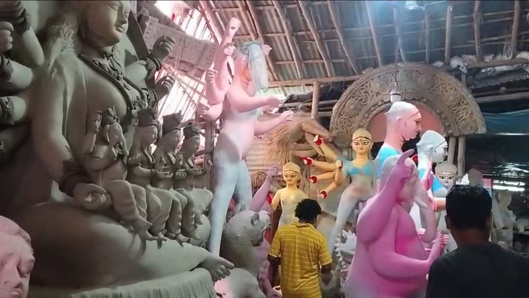 নিজস্ব সংবাদদাতা, মালদা :- হাতে গোনা আর মাত্র কয়েকটা দিন তারপরে শুরু হবে বাঙালির শ্রেষ্ঠ উৎসব দুর্গাপূজা। মাতবে আপামোর বাঙালি।বাজতে চলেছে ঢাকের কাঠি, অতি ব্যস্ত পটুয়া পাড়ার মৃৎশিল্পীরা। চলছে প্রতিমার গায়ের শেষ তুলির টান। মালদা জেলার বিভিন্ন পটুয়া পড়ার মধ্যে চলছে শেষ মুহূর্তের ব্যস্ততা।নাওয়া খাওয়া ভুলে গিয়ে এখন দুর্গা প্রতিমা তৈরিতে ব্যস্ত প্রত্যেকটি শিল্পী। মালদার ইংরেজ বাজারের ফুলবাড়ী এলাকার মৃৎশিল্পী অষ্টম চৌধুরীর কারখানায় চলছে। শেষ মুহূর্তের কাজ।