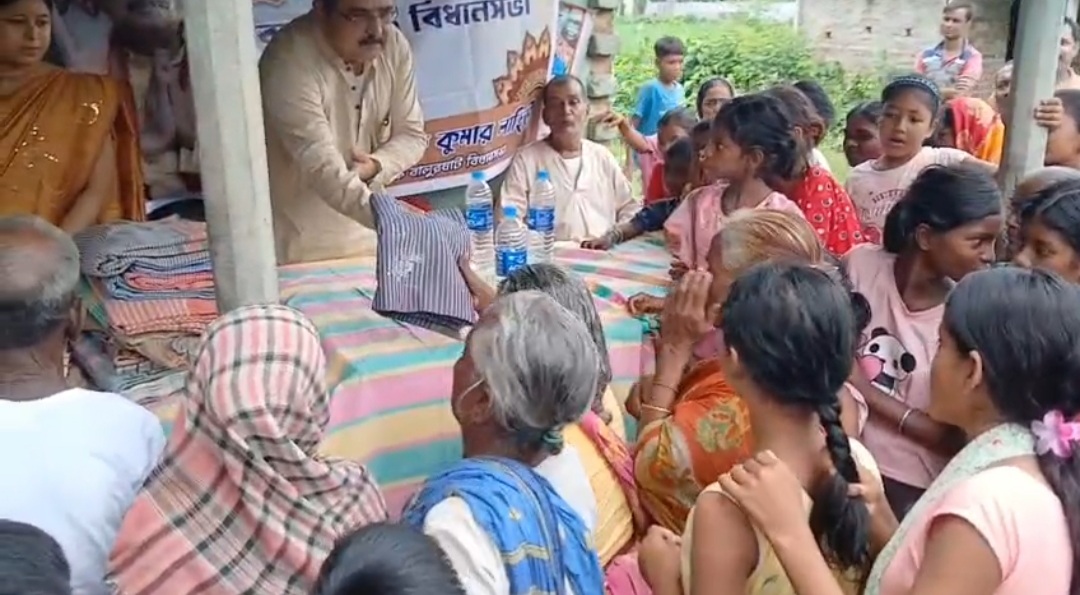 ধলপাড়া গ্রামে পুজোর আনন্দ ভাগ করে নিলেন বিধায়ক, দরিদ্রদের হাতে পোশাক ও সামগ্রী।