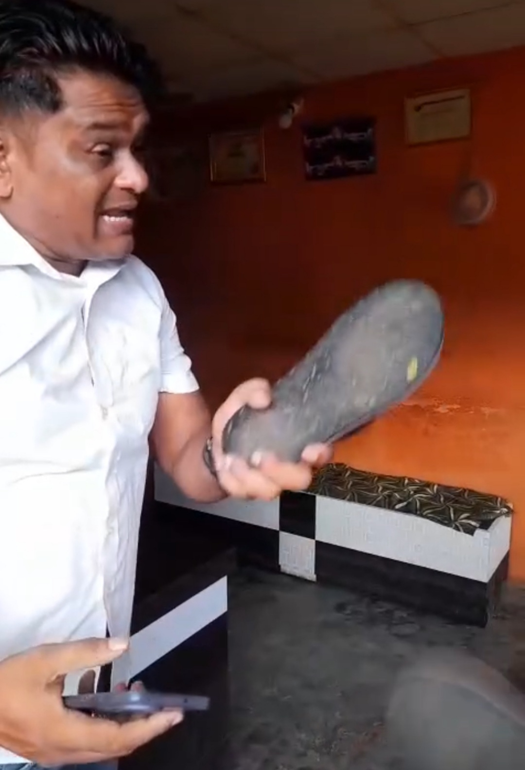 অভিযোগ, খড়গপুর পৌরসভার ৩১ নম্বর ওয়ার্ডের কাউন্সিলর মমতা দাস বিতর্কের সময় আশোক সিংকে জুতো দিয়ে মারেন। ভিডিওতে দেখা যায়, আশোক তাঁকে থামানোর চেষ্টা করছেন, কিন্তু মমতা দু’বার জুতো দিয়ে আঘাত করেন। আশোক রাগে নিজের জুতো খুলে নিলেও ক্যামেরা দেখে আবার পরে নেন। ভিডিওতে শোনা যায়, আশোক বলছেন – “দেখুন, আমাকে স্যান্ডেল দিয়ে মারা হচ্ছে। এবার আমি পুলিশ ডাকব।”