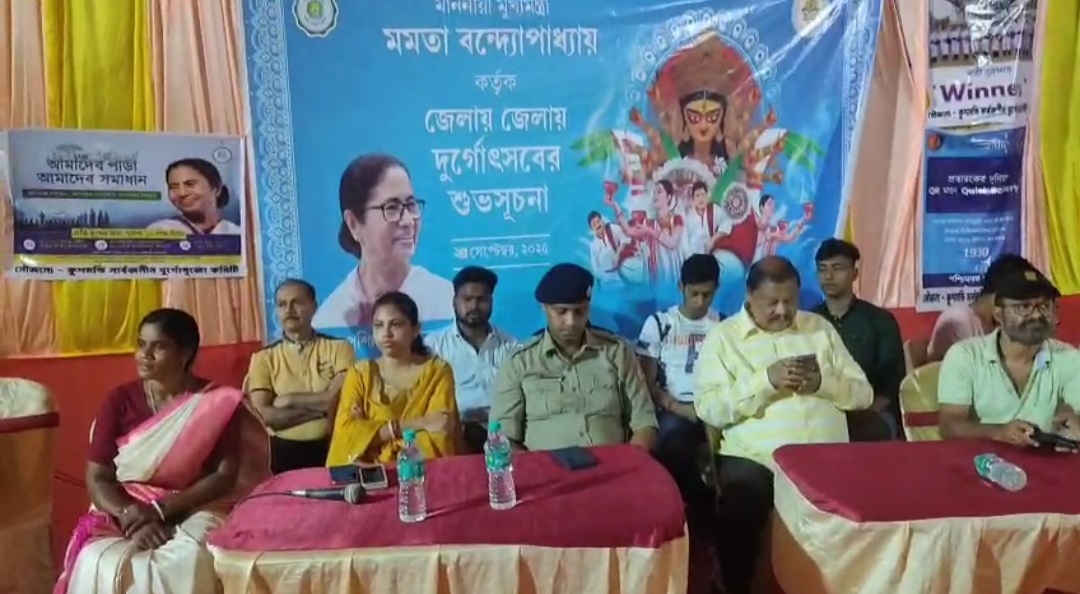 দক্ষিণ দিনাজপুর , নিজস্ব সংবাদদাতা:- দক্ষিণ দিনাজপুর জেলার কুশমন্ডি ব্লকের জেলা পরিষদ মার্কেটে আজ, মঙ্গলবার (২৩ সেপ্টেম্বর ২০২৫) ৭৮তম সার্বজনীন দুর্গাপূজার আনুষ্ঠানিক ভার্চুয়াল উদ্বোধন করলেন রাজ্যের মুখ্যমন্ত্রী মমতা বন্দ্যোপাধ্যায়। পূজার উদ্বোধনী অনুষ্ঠানকে কেন্দ্র করে সমগ্র এলাকায় ছড়িয়ে পড়ে উৎসবের আবহ।