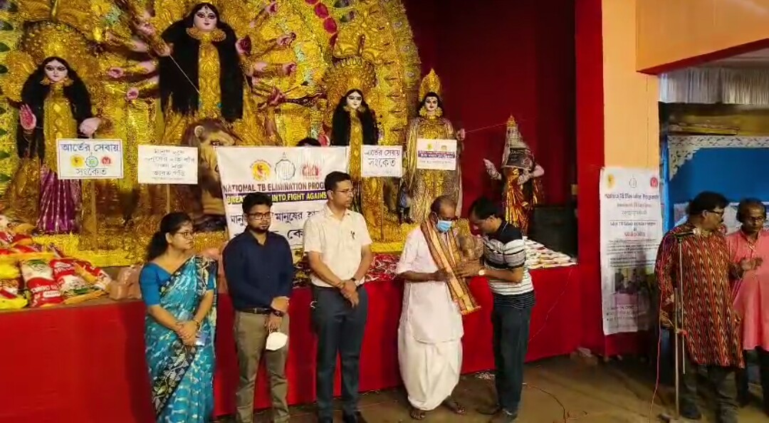 পূর্ব মেদিনীপুর, নিজস্ব সংবাদদাতাঃ – পূর্ব মেদিনীপুর জেলার কোলাঘাটে সংকেত এবং ছাত্র সংঘ আয়োজিত দুর্গোৎসবের প্রাঙ্গণ হতে সারা কোলাঘাট ব্লকের সরকারীভাবে চিকিৎসাধীন যক্ষ্মা রোগিদের জন্য একমাসের পুষ্টি খাদ্য বিতরণ করা হল বৃহস্পতিবার। এই সংকেত ক্লাবের সাথে জেলা স্বাস্থ্য দফতরের এই মর্মে মৌ স্বাক্ষর হয়েছে যে, এই বছর পুজোর মাস থেকে আগামী বছর পুজোর মাস পর্যন্ত পূর্ব মেদিনীপুর জেলার বিভিন্ন ব্লকের সরকারীভাবে চিকিৎসাধীন যক্ষ্মা রোগিদের পুষ্টি খাদ্য বিতরণ করা হবে সংস্থার উদ্যোগে।
