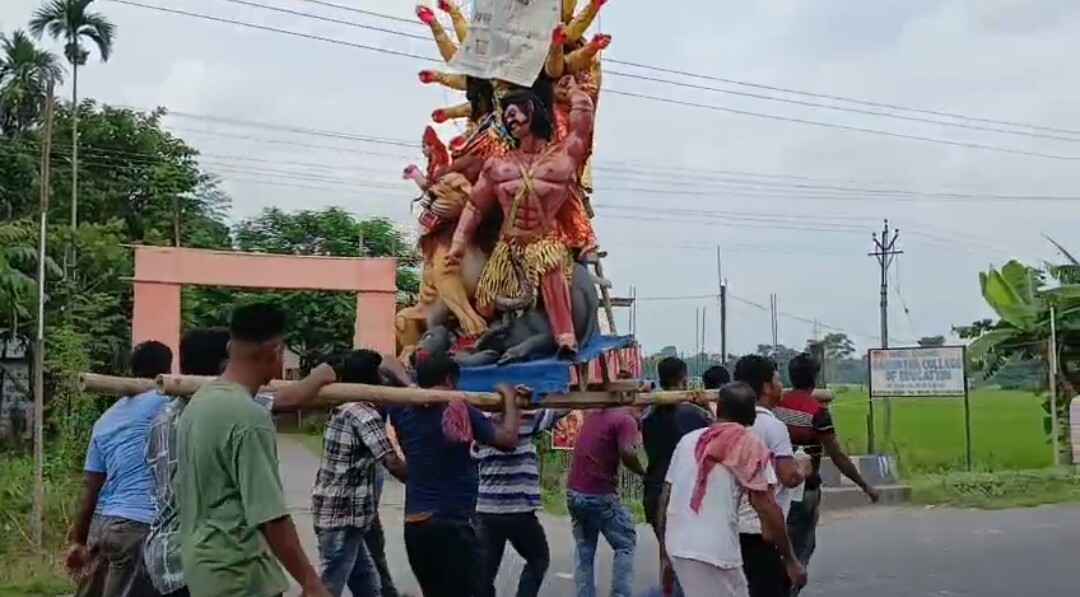 আলিপুরদুয়ার, নিজস্ব সংবাদদাতা:- প্রথা অনুযায়ী শনিবার সকালে ফালাকাটা ব্লকের জটেশ্বর নবনগরের শিকদার বাড়ির প্রতিমা কুমোরটুলি থেকে কাঁধে করে নিয়ে আসা হলো। জানা গিয়েছে, পুরানো রীতি মেনেই এখনও দুর্গা পুজো হয় শিকদার বাড়ির ঠাকুর দালানে। পুজোর কয়েকটি দিন শিকদার বাড়ির সদস্যদের সঙ্গে মিশে যান প্রতিবেশীরাও। ওই পুজোয় কোন জাঁকজমক আলো-আঁধারি খেলা না থাকলেও এলাকার এতো মানুষ ভিড় জমান যে,সিকদার বাড়ির ওই পুজো যেনো সর্বজনীতা লাভ করে আপন খেয়ালে। এদিন পরিবারের রঞ্জিত শিকদার জানান, “পুরোনো নিয়ম ও নিষ্ঠা সহকারে পুজো করা হয়। আমাদের বাড়ির প্রতিমা প্রায় ৫ কিলোমিটার দূর থেকে কাঁধে করে নিয়ে আসা হয় ,কাঁধে করেই দশমীতে বিসর্জনও দেওয়া হয়। এলাকার প্রচুর মানুষ ওই প্রতিমা আনার দিন সামিল হন। রীতি মেনে অষ্টমীর গভীর রাতে রক্ষা কালীর পুজো করা হয়।”