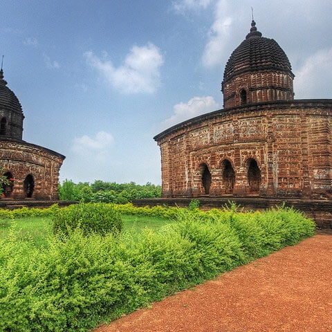 ১৭শ শতকে রাজা দুর্গামদন দেব নির্মিত এই মন্দিরে টেরাকোটা শিল্পের নিখুঁত নিদর্শন দেখা যায়। মন্দিরের দেয়ালে কৃষ্ণের লীলা, রাধার প্রেম, আর ধর্মীয় জীবনের প্রতিচ্ছবি খোদিত আছে। - শ্যামরায় মন্দির