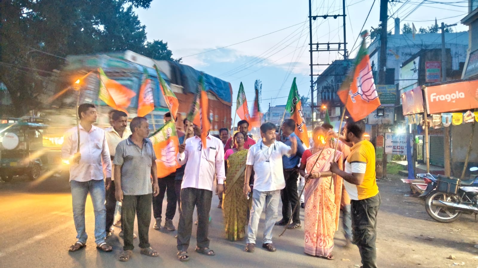 উত্তরবঙ্গে সাংসদ-বিধায়কের ওপর হামলার প্রতিবাদে চন্দ্রকোনারোডে বিজেপির বিক্ষোভ মিছিল।