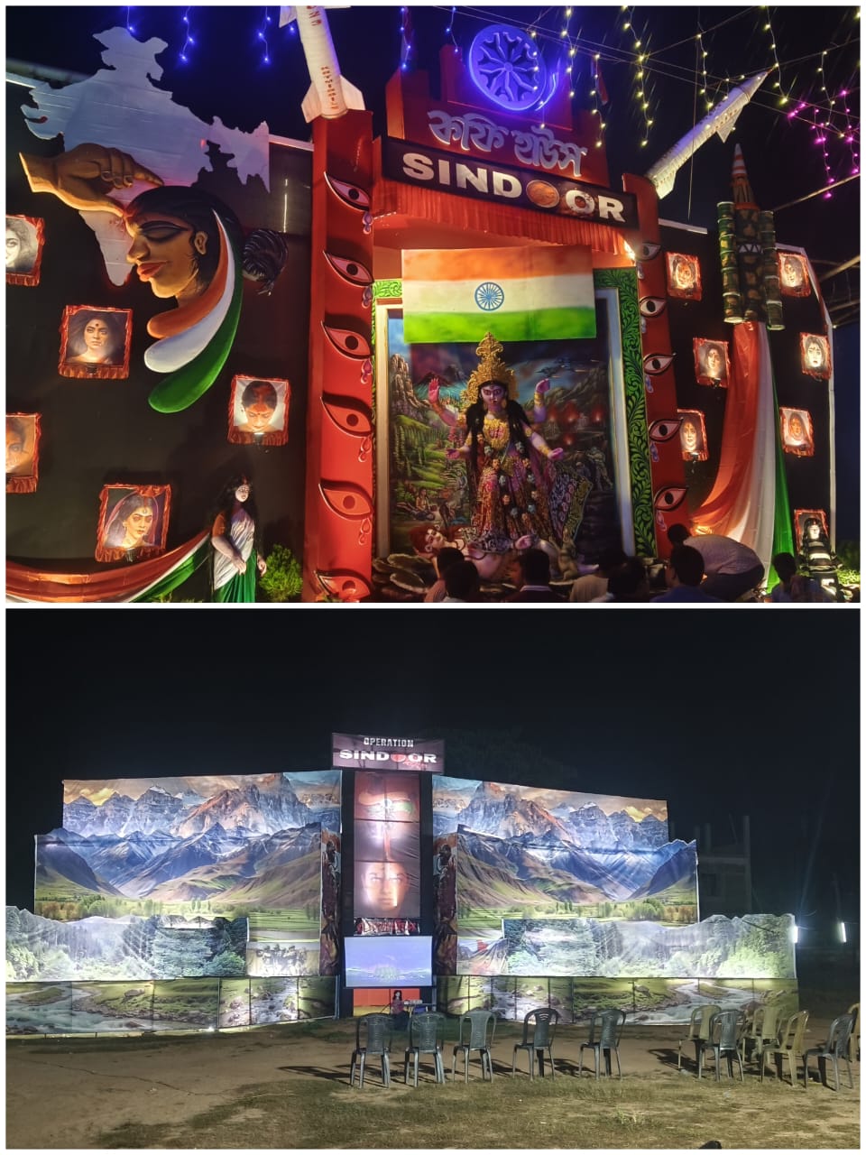অপারেশন সিঁদুরের থিমে এক সূত্রে বাঁধল দুই পুজো কমিটি, দেশপ্রেমে মুখর গড়বেতা।