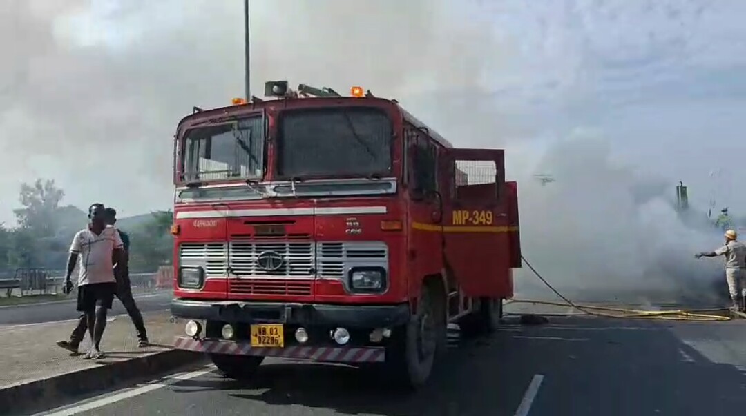 ১২ নম্বর জাতীয় সড়কে আগুনে পুড়ে ছাই জাতীয় সড়ক কর্তৃপক্ষের গাড়ি, অল্পের জন্য প্রাণে বাঁচলেন তিনজন।