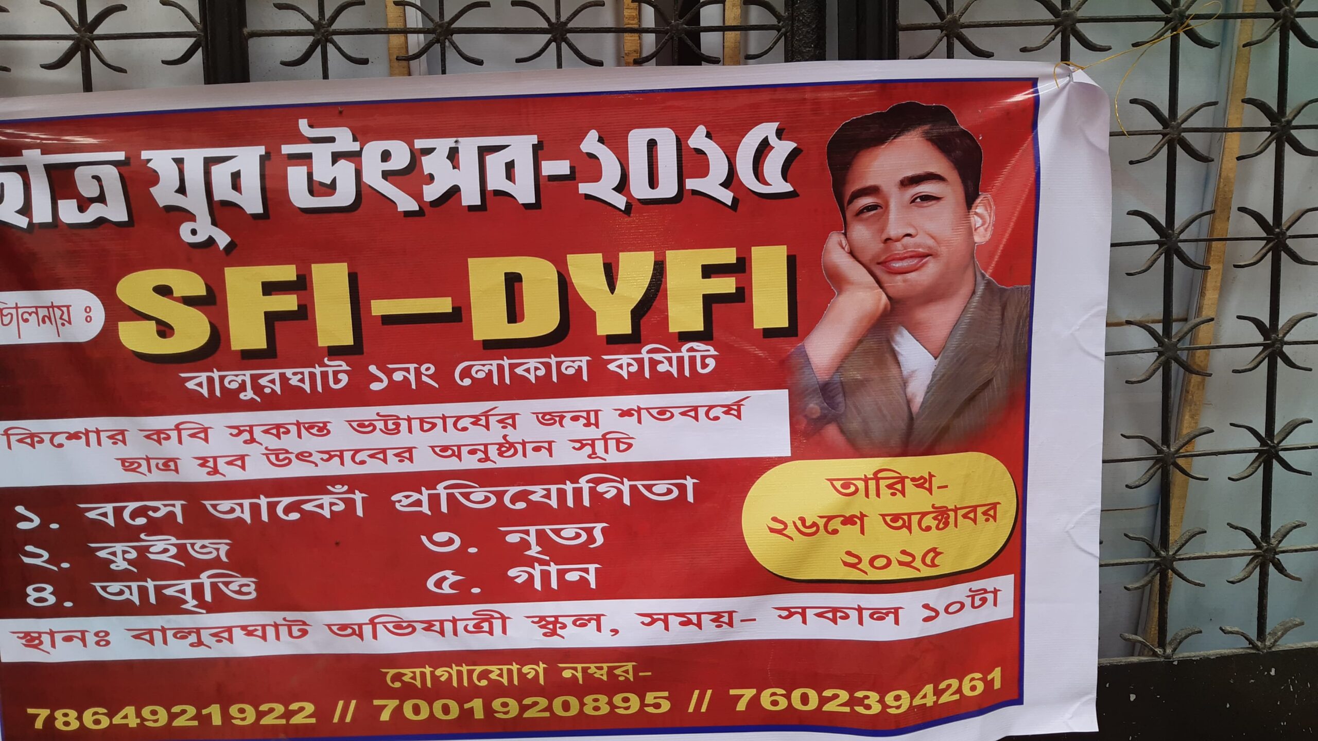 সুকান্ত ভট্টাচার্যের জন্ম শতবর্ষে বালুরঘাটে বিশেষ ছাত্র-যুব উৎসব।