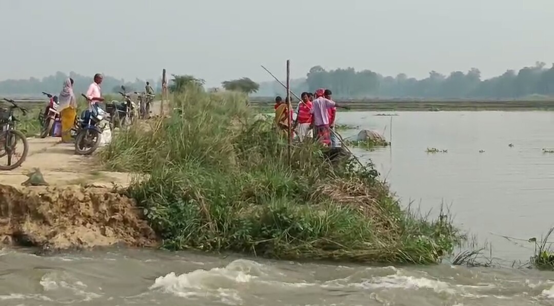 রানীগঞ্জে তুমুল বর্ষণে ভেঙে গিয়েছে ১২ মিটার রাস্তা, নৌকায় পারাপার চলছে গ্রামবাসীদের।