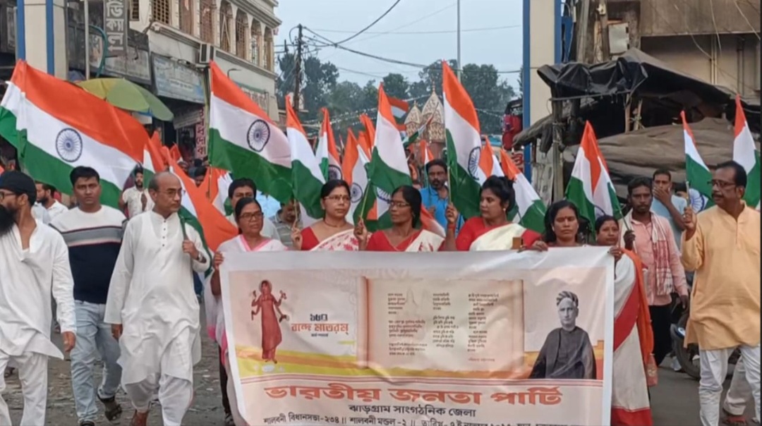 জাতীয় সংগীত “বন্দেমাতরম”এর সার্ধশত বর্ষ উপলক্ষে চন্দ্রকোনারোডে বর্ণাঢ্য শোভাযাত্রা BJP র।