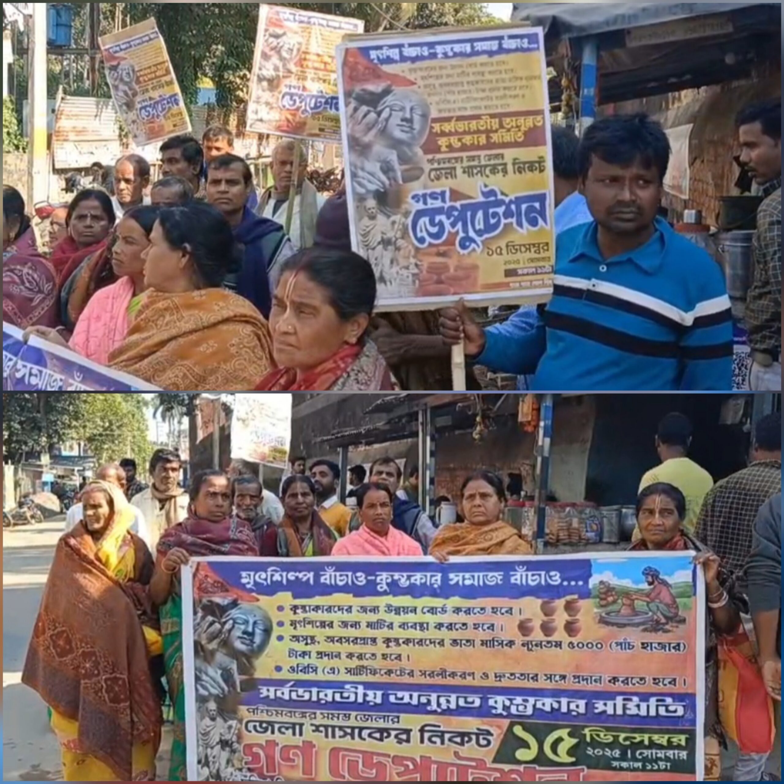 পাঁচ দফা দাবিতে দক্ষিণ দিনাজপুরে শতাধিক কুম্ভকার ও মৃৎশিল্পীর বিক্ষোভ ডেপুটেশন।