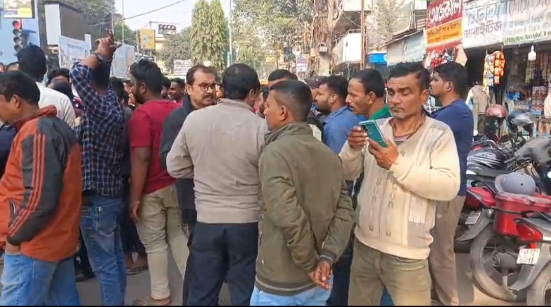 লক্ষাধিক জরিমানার প্রতিবাদে রাস্তায় নামল বালি ব্যবসায়ীরা, প্রশাসনিক ভবন ঘেরাও।