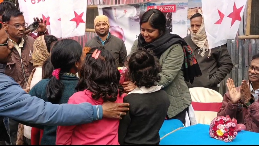 ভাঙন দুর্গতদের পাশে সিপিআইএম নেত্রী মীনাক্ষী মুখার্জি, ভুতনিতে কম্বল বিতরণ।