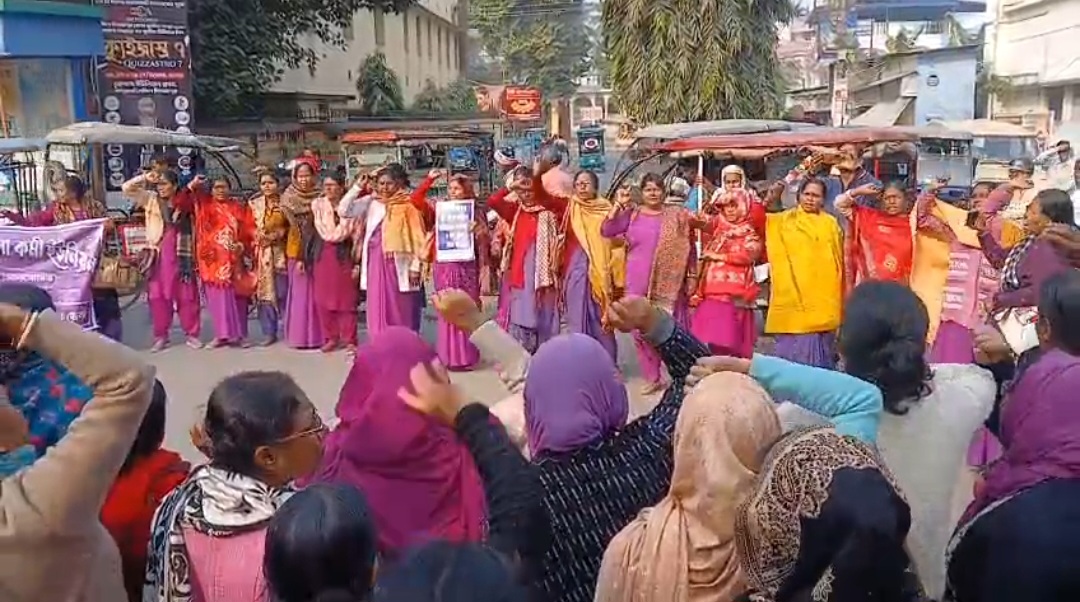 দক্ষিণ দিনাজপুর জুড়ে আশা কর্মীদের কর্মবিরতি, জেলা সদর ঘিরে বিক্ষোভ মিছিল।