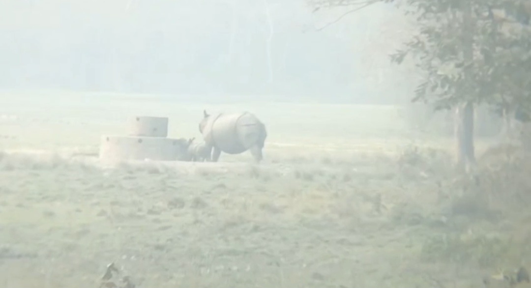 ঘন কুয়াশা আর হালকা শীতের আমেজে পাহাড় থেকে সমতল সর্বত্রই এখন পর্যটকের ঢল।সেই ভিড়ের মধ্যেই রামসাই ওয়াচ টাওয়ার সংলগ্ন এলাকায় মা-গন্ডারের সঙ্গে শাবকটিকে দেখা যায়।রামসাগরের পাশে লবণ সংরক্ষণের জায়গায় খাবারের খোঁজে এসেছিল মা-গন্ডার।তার সঙ্গেই নজরে পড়ে ফুটফুটে শাবকটি।নিরাপদ দূরত্ব বজায় রেখে পর্যটকরা ক্যামেরাবন্দি করেন সেই বিরল মুহূর্ত।