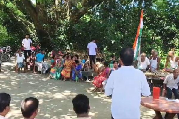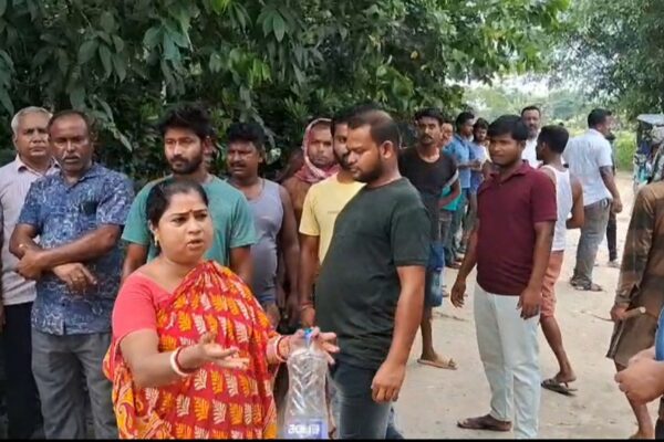 ধুলোর জ্বালায় চরম সমস্যায় পড়ছে এলাকার বাসিন্দারা, গ্রামবাসীরা একজোট হয়ে আশ্রমপাড়া এলাকায় রাস্তার উপর বাঁশ দিয়ে পথ অবরোধ করেন।