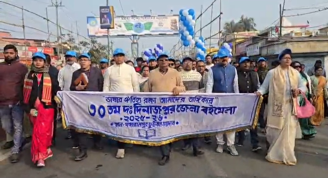 বর্ণাঢ্য শোভাযাত্রায় গঙ্গারামপুরে শুরু জেলা বইমেলা।