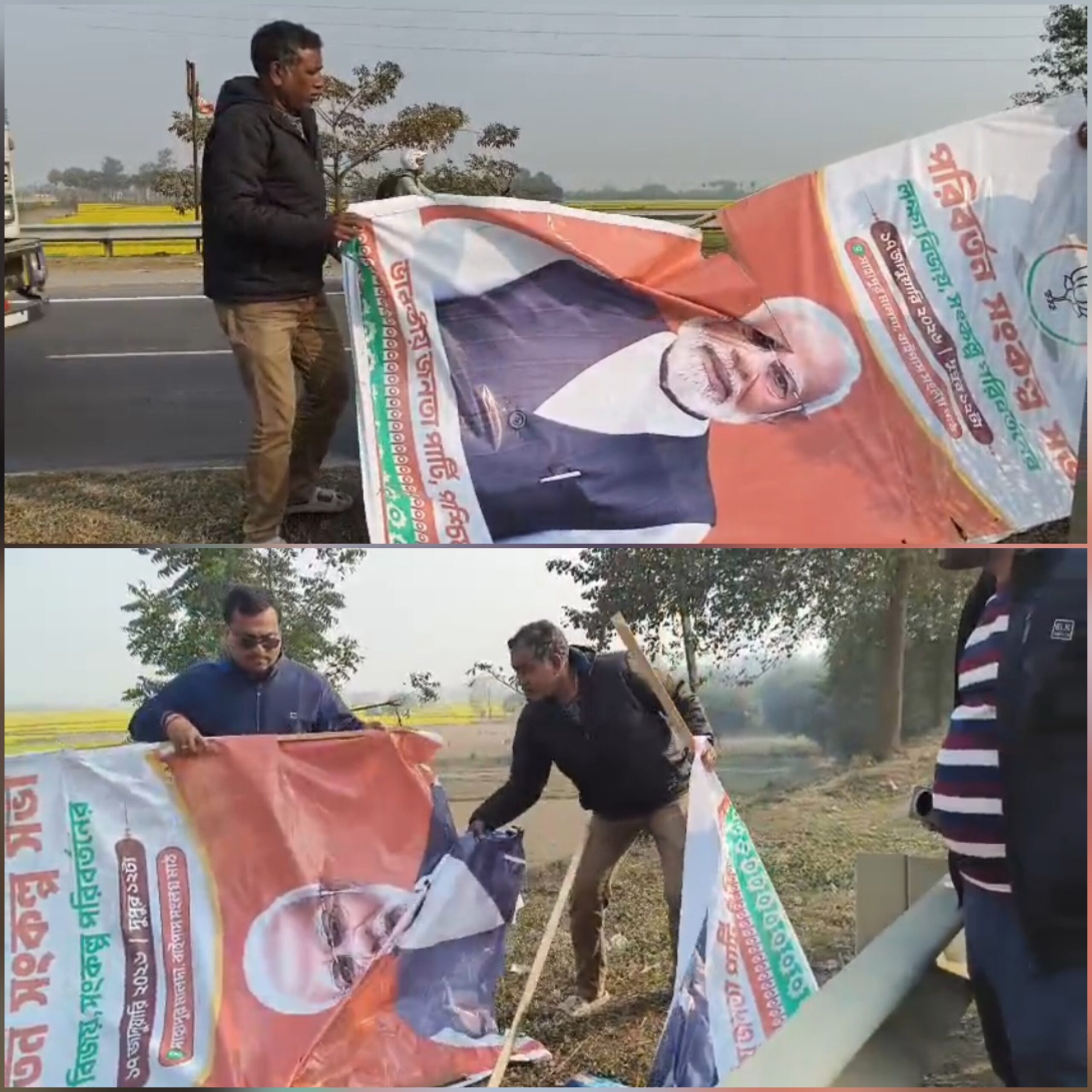 মালদায় মোদী আগমণের প্রাক্কালে রাজনৈতিক উত্তেজনা, ব্যানার–ফ্লেক্স ছেঁড়াকে ঘিরে তরজা।