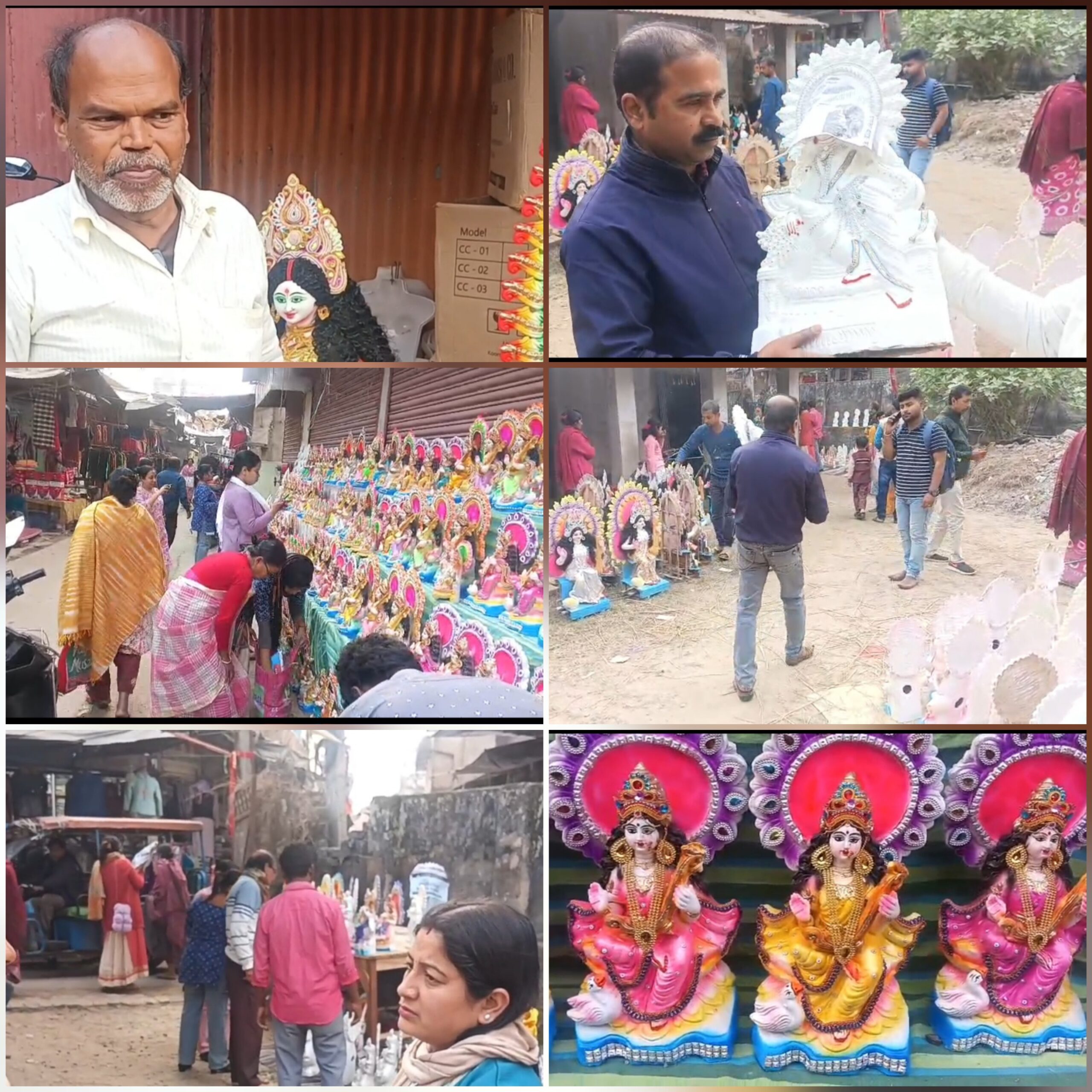 আর একদিন বাদেই বাগদেবী সরস্বতী পুজো, দক্ষিণ দিনাজপুর জেলার সদর শহর বালুরঘাট তহ বাজারে বিভিন্ন মাপের সরস্বতীর প্রতিমার নিয়ে বাজার বসিয়েছে মৃৎশিল্পীরা। তবে প্রতিমার তুলনায় বাজারে ক্রেতা অনেকটাই কম। প্রতিমা তৈরীর খরচের তুলনায় দাম ও কম্পাচ্ছেন শিল্পীরা বলেই অভিযোগ মৃৎশিল্পীদের।