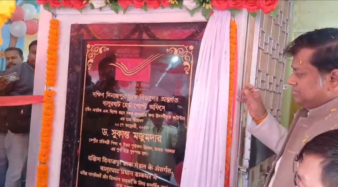বালুরঘাট, দক্ষিণ দিনাজপুর, নিজস্ব সংবাদদাতা:- বয়স্ক ও বিশেষ চাহিদা সম্পন্ন গ্রাহকদের জন্য পৃথক কাউন্টার চালু হলো বালুরঘাট পোষ্ট অফিসে। উত্তরবঙ্গে প্রথম এই সুবিধা বলে দাবি ভারতীয় ডাক বিভাগের। বৃহস্পতিবার বালুরঘাট পোষ্ট অফিসের গ্রাউন্ড ফ্লোরে ফিতে কেটে দু-দুটি কাউন্টারের সূচনা করলেন কেন্দ্রীয় প্রতিমন্ত্রী ডঃ সুকান্ত মজুমদার।