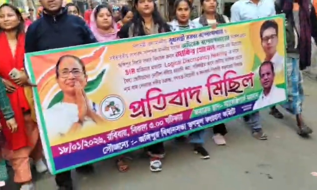 মিছিলে অংশগ্রহণকারীদের হাতে ছিল “SIR এর নামে সাধারণ মানুষের হয়রানি মানি না, মানবো না”, “ভোটারদের হয়রানি বন্ধ কর” লেখা প্ল্যাকার্ড। অভিযোগ, SIR প্রক্রিয়ার নামে সাধারণ ভোটারদের অযথা নোটিস, হিয়ারিং ও হয়রানির শিকার করা হচ্ছে।