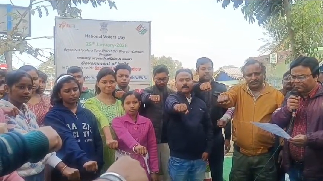 দক্ষিণ দিনাজপুর, নিজস্ব সংবাদদাতা:- বালুরঘাটে ২৫শে জানুয়ারী রবিবার সকালে জাতীয় ভোটার দিবস উদযাপন উপলক্ষ্যে একটি বিশেষ অনুষ্ঠান আয়োজিত হয়। ভারত সরকারের যুব বিষয়ক ও ক্রীড়া মন্ত্রণালয়ের অধীনে “মেরা যুবা ভারত” (মাই ভারত) – দক্ষিণ দিনাজপুর জেলার ব্যবস্থাপনায় এবং সবজি এটিএম ওয়েলফেয়ার সোসাইটির সহযোগিতায় এই অনুষ্ঠানটি জটালি মোড়ে অনুষ্ঠিত হয়।