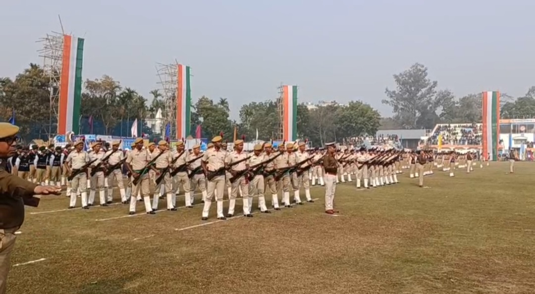 বর্ণাঢ্য কুচকাওয়াজ ও ট্যাবলোয় বালুরঘাট স্টেডিয়ামে প্রজাতন্ত্র দিবস উদযাপন।
