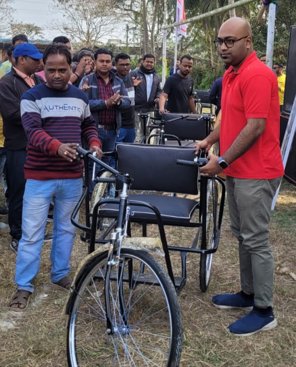 কাকগাছিয়াতে ক্রিকেটের সঙ্গে মানবিকতা, প্রতিবন্ধীদের ট্রাই সাইকেল বিতরণ B.G ডিস্ট্রিবিউটারের।