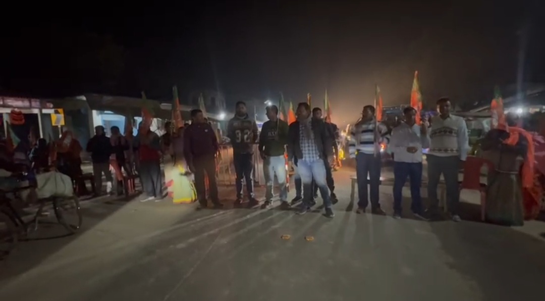 বিধানসভায় কদর্য আক্রমণের প্রতিবাদে পথে নামল বিজেপি, বালুরঘাটে অবরোধ।