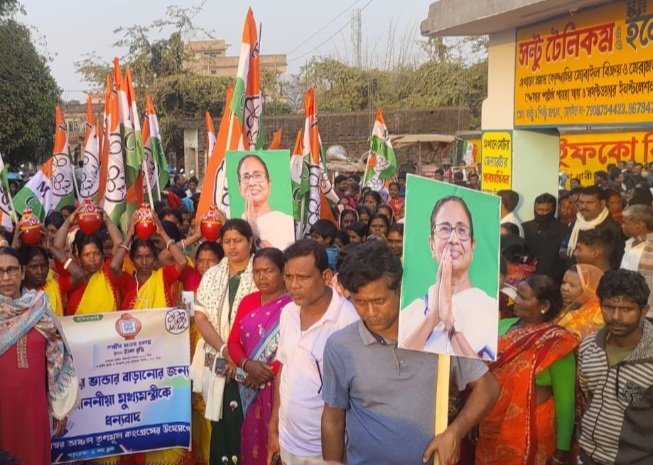 লক্ষ্মী ভান্ডার বাড়ায় কৃতজ্ঞতা প্রকাশ, গড়বেতায় বিধায়ক উত্তরা সিংহ হাজরার উপস্থিতিতে তৃণমূলের শক্তি প্রদর্শন।